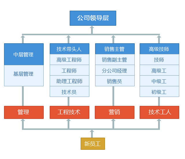 漢江工具為不同群體的員工制定了不同的發展路徑圖,新員工入職之后的最初三年是最需要發展和支持的群體,所以新員工階梯式發展計劃應運而生,每一年都有明確的培訓目標和相對應的課程設置;為新員工指明了發展方向,幫助員工更直接和清晰地認識不同時間段需學習的知識和提高的能力。三年后的員工已是成熟的員工,并且展現出了不同的發展軌跡,有的成為技師,有的則成為管理人員;公司充分考慮了職業的上升通道,制定了領導力發展階梯,從組長,到中層領導直至公司高管,都有相對應的培訓和發展項目,以順應不同人群的發展需求。